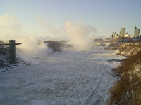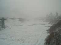 2007-01-15 Niagara Mornings 13 - January 15, 2007 Weather conditions in Niagara Falls when the photo was taken: Wind: north, 13 km Temp: -2° C Freezing rain Time: 8:33 a.m. This photo from Rainbow bridge, where concrete meets steel part of bridge. -