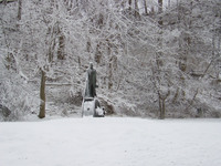 Statue of Nikola Tesla in Queen Victoria Park with a dusting of snow Statue sculpted by Hamilton artist Les Drysdale, 2006 -