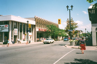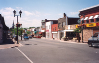 Queen Street, Downtown Niagara Falls Store fronts and cars parked along Queen Street in Downtown Niagara Falls. -