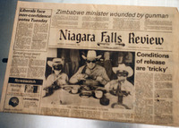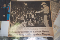 The Original Lone Ranger Clayton Moore at Maple Leaf Village, Niagara Falls Photograph of an article in the Niagara Falls Review about the Lone Ranger Clayton Moore visiting Niagara Falls -