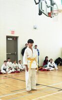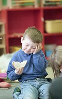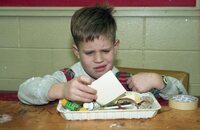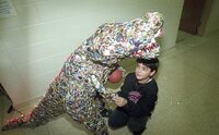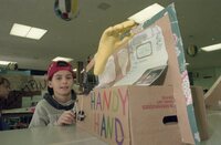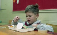 Picture of 7 years old Graham Sharp playing a game called “guess what's in it.” Kids look at a tray of objects, and have to try to remember what is in the tray. Kids who remember most objects win. The holiday program consists of a ‘mini olympics’ day where kids played games like hockey, bowling, and cheering, and had team competitions for points.