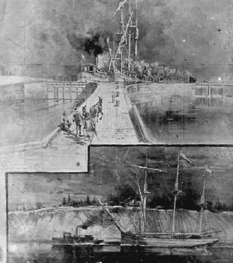 A Ship in Lock No. 1 of the New Welland Canal, in the Deep Cut of the Welland Canal