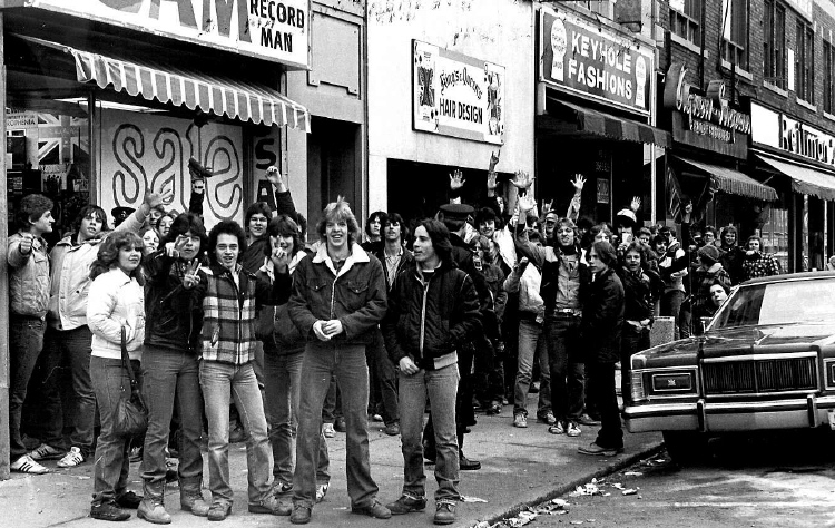 - People waiting to get into Sam the Record Man at Queens St, St. Clair & Ontario Avenues