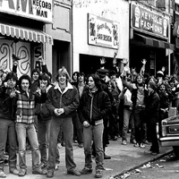 People waiting to get into Sam the Record Man at Queens St, St. Clair & Ontario Avenues