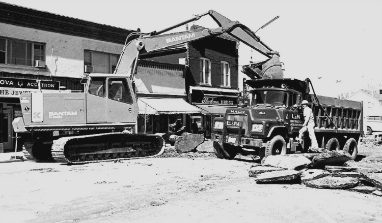 - Construction on Main Street - Thorburn's Drugstore is in the Background
