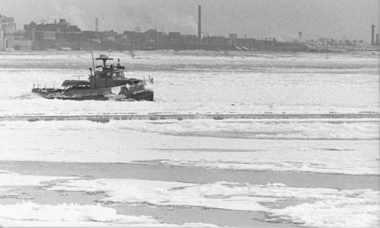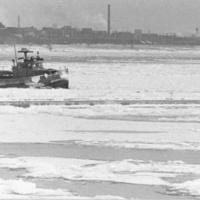 Ice Breaker the Niagara Queen working by the International Hydro Control Dam in the Upper Niagara River