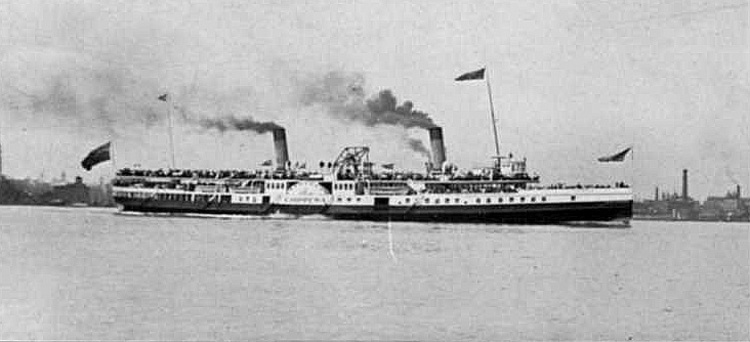 Steam ship Chippewa in Lake Ontario approaching Toronto