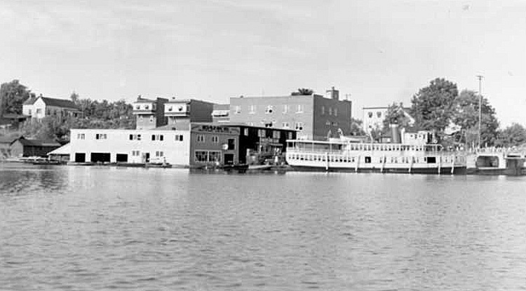 - en-CA Sign to left of steamer reads Duke's Motor Service and the Twenty-One Club ;