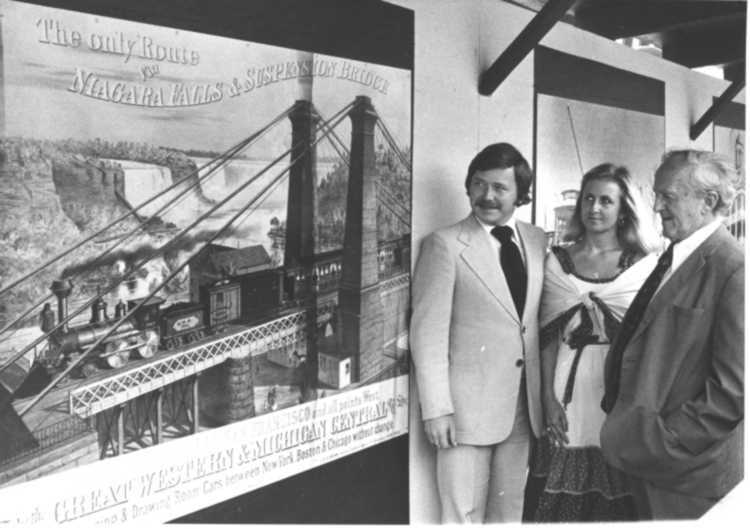 - en-CA George Seibel (Chairman of the Niagara Falls Heritage Foundation) far right ; Marketing Manager for York Hanover Construction and his secretary ;