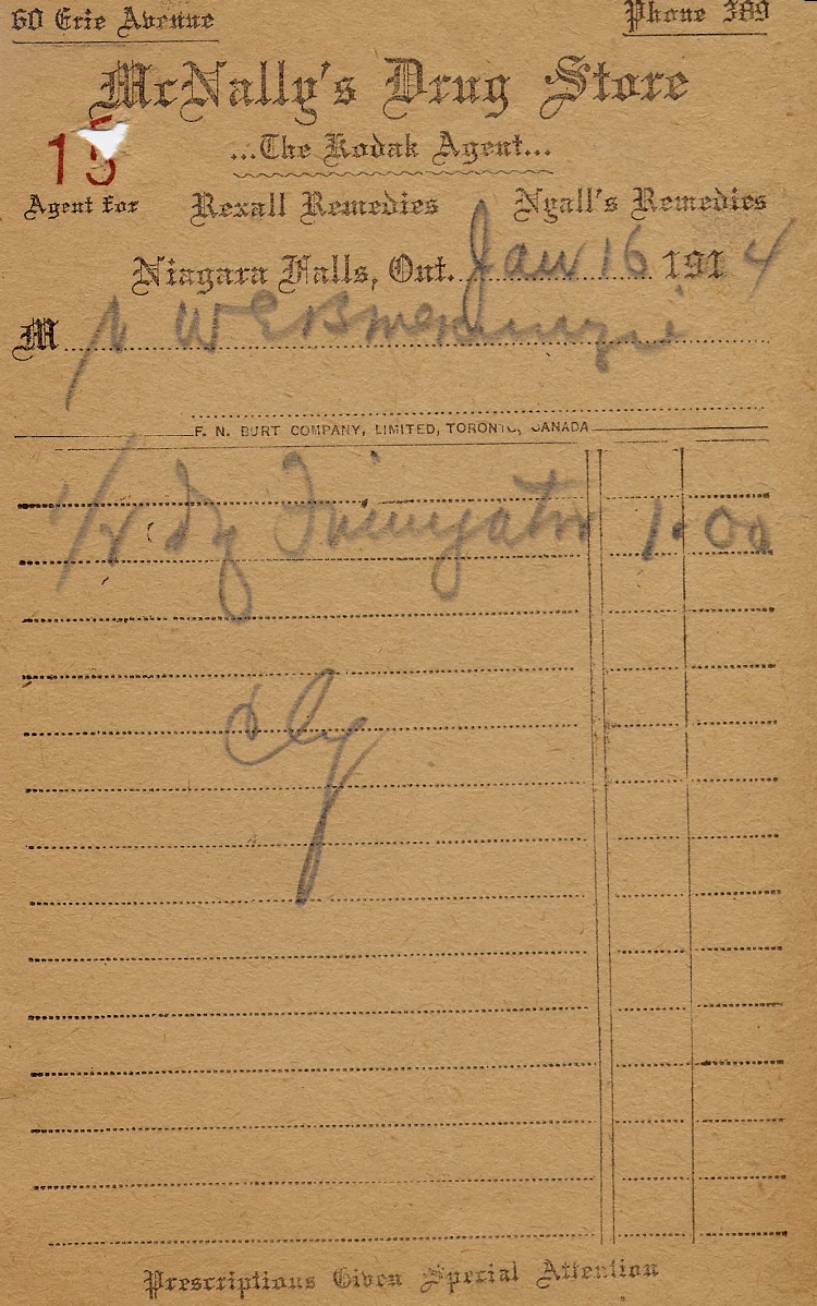 - McNally's Drug Store 60 Erie Ave invoice January 16 1914
