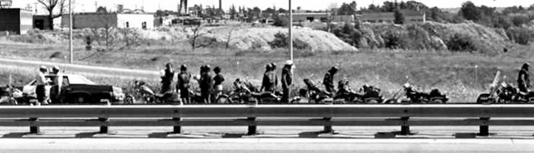 - Niagara Regional Police Officers questioning a group of motorcycle riders at the QEW and Ontario Street exit in St. Catharines