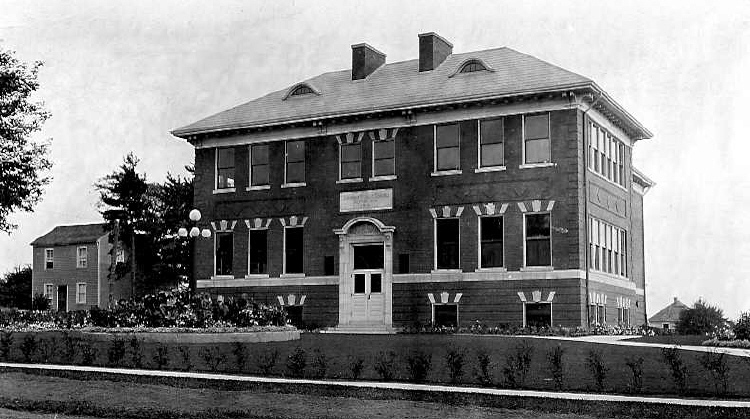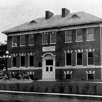 - Plaque over doorway reads Stamford Public School Section No. 6, 1914