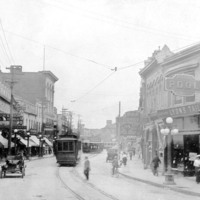 - buildings cars automobile streetcars bicycles shoe store S & A Royal Pool Parlour Lyons Tailoring Co.