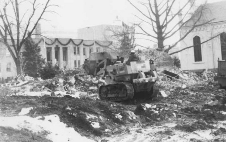 Demolition of the St. Catharines Public Library at the corner of James and Church Street