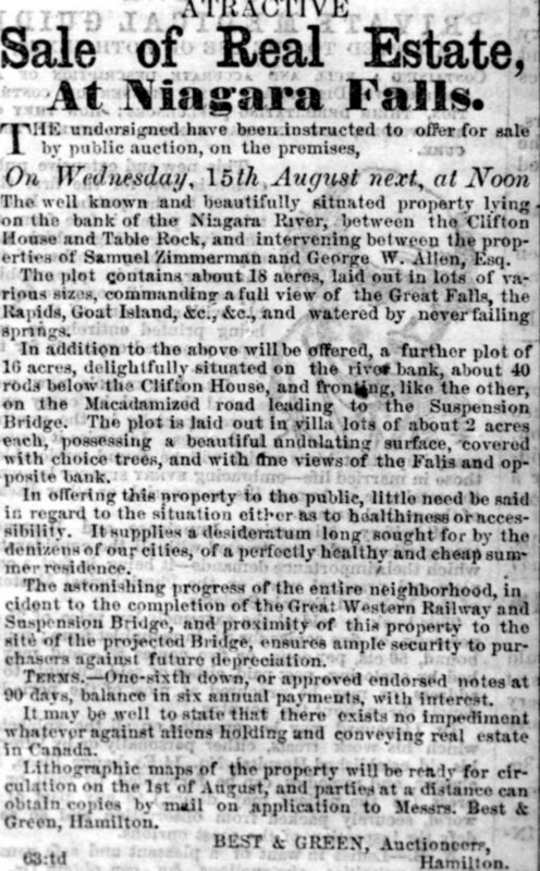 Newspaper advertisment relating to an auction sale of the property and land that became Queen Victoria Park
