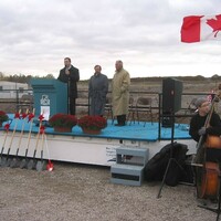 - colour digital image ; L-R: Alderman Victor Pietrangelo at microphone, Mayor Wayne Thomson, MP Gary Pillitteri, musician not identified ;