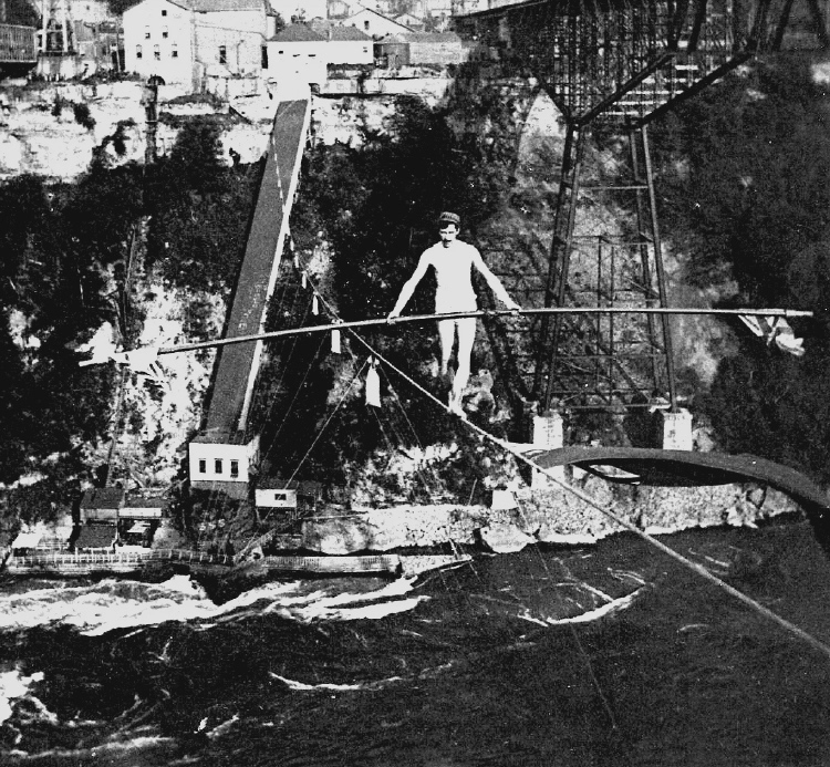 - Clifford Calverly crossing the Niagara Gorge on a 3/4 inch Wire
