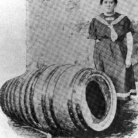 Maude Willard with Carlise Graham's Barrel which she used to go through the Whirlpool Rapids