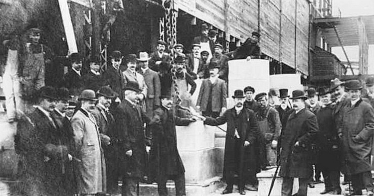 Sir Henry Pellatt laying down one of the corner stones at the Toronto Power Plant
