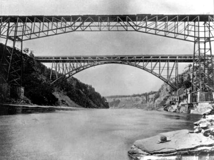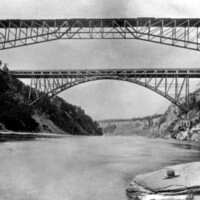 - Cantilever bridge in foreground ; Lower Steel Arch or Whirlpool Bridge in background ;