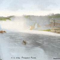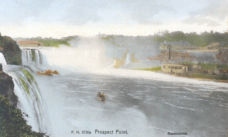 - Prosepct Point (left), Horseshoe Falls (centre), Ontario Power Generating Station (right), Maid of the Mist (centre) ;