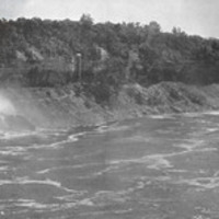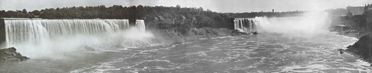 - Panoramic view of American and Horseshoe Falls, Ontario Power Generating Station under construction