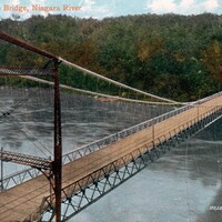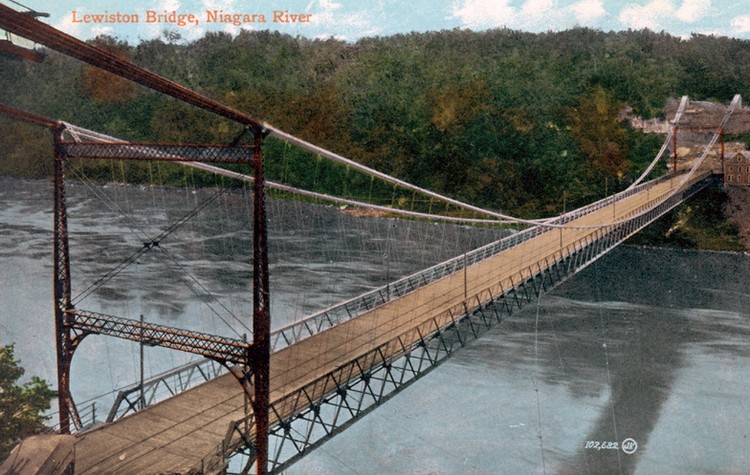 - Niagara River and Niagara Gorge, streetcar turning onto the Bridge lower left ;