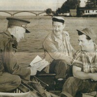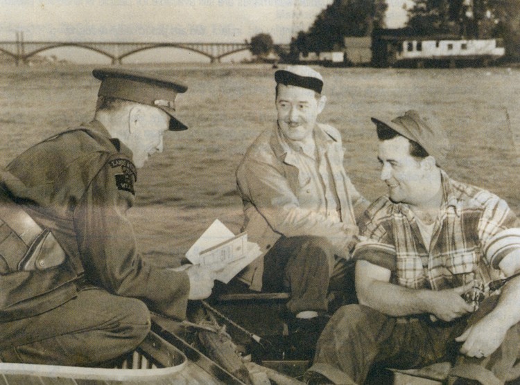 - Conservation Officer A. Roy Muma of the Ontario Department of Lands and Forests & Fish & Wildlife talking to fishermen at the mouth of the Niagara River