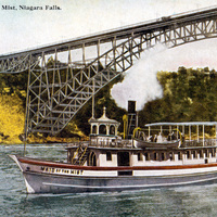 - en-CA No. 5106 ; reverse reads A graceful little steamer, yet powerful enough to push her way against the mighty current, right into the heart of the madly seething waters at the base of the Falls. From her deck a view of the Falls is obtained at a distance of but a few yards, a sight never to be forgotten ;