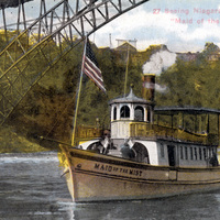 - en-CA No. 27 ; reverse reads Though small this steamer is powerful enough to push her way against the mighty current, right into the heart of the madly seething waters at the base of the Falls. From her deck a view of the Falls is obtained at a distance of but a few yards, a sight never to be forgotten ;