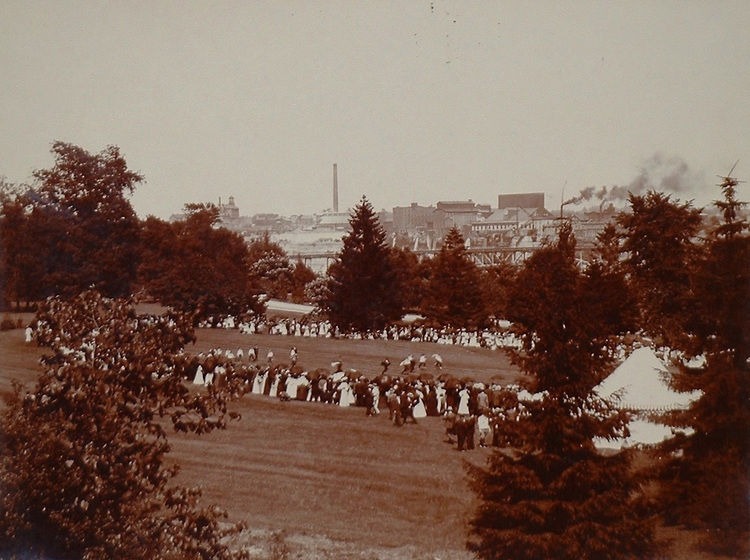 Queen Victoria Park, the Honeymoon Bridge and Niagara Falls NY in background