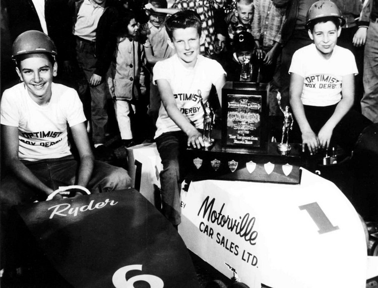 - 5th annual Optimist Club Soap Box Derby held on Drummond Hill - David Ryder (2nd place) Chuck Shafley (winner) Richard Barnhart (3rd place)