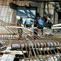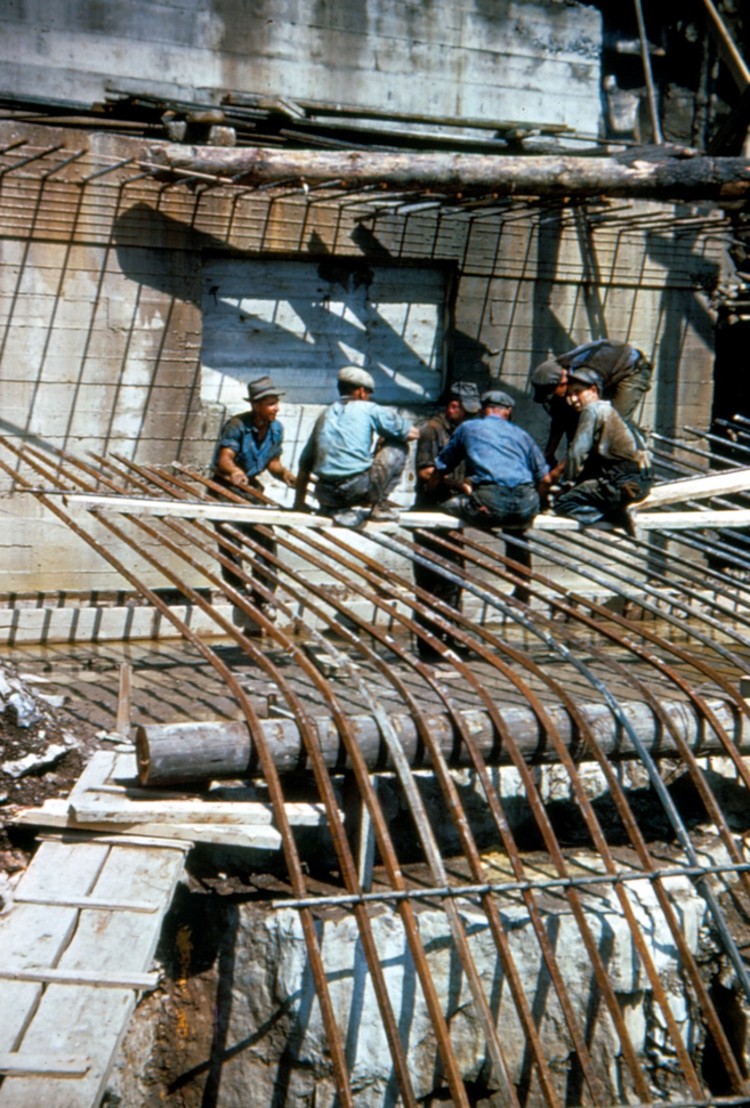 Construction of the Rainbow Bridge - workers taking a break