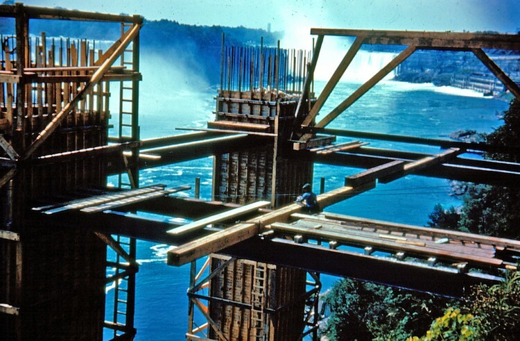 - Construction of the Rainbow Bridge - American Falls (left), Horseshoe Falls (background)