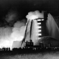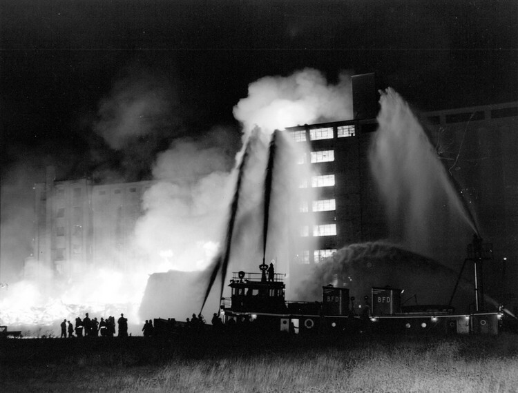 Buffalo Fire Department fire-boat at a blaze at Maple Leaf Mills Port Colborne on the Welland Canal