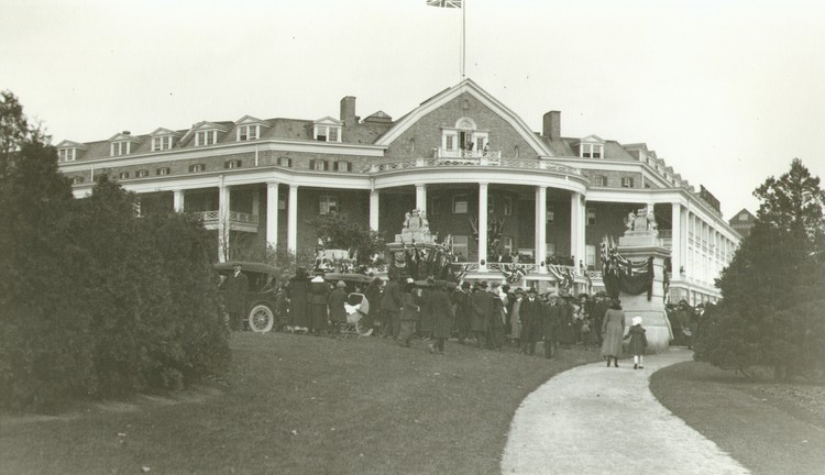Clifton Hotel decorated for the visit of the Prince of Wales - crowds waiting at Mowat Gate