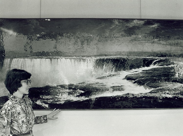 - Niagara Falls Public Library - Victoria Avenue - Alice Haigh staff member with Frederick Church painting of Niagara