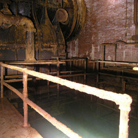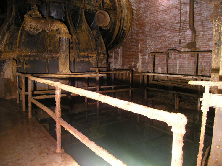 en-CA Very bottom end of wheelpit looking upriver. Turbine discharging through wall