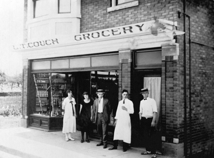 - Leonard Couch proprietor fourth from left ; Potter Farm in background (left) ;