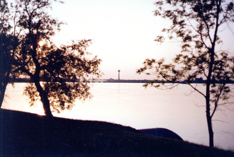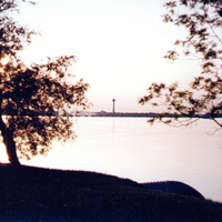 - Upper Niagara River at dusk - Skylon Tower in distance