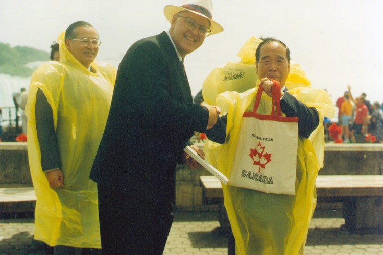 - George Bailey (centre) Communications Director Niagara Parks Commission with visitors to Niagara Falls