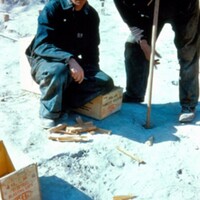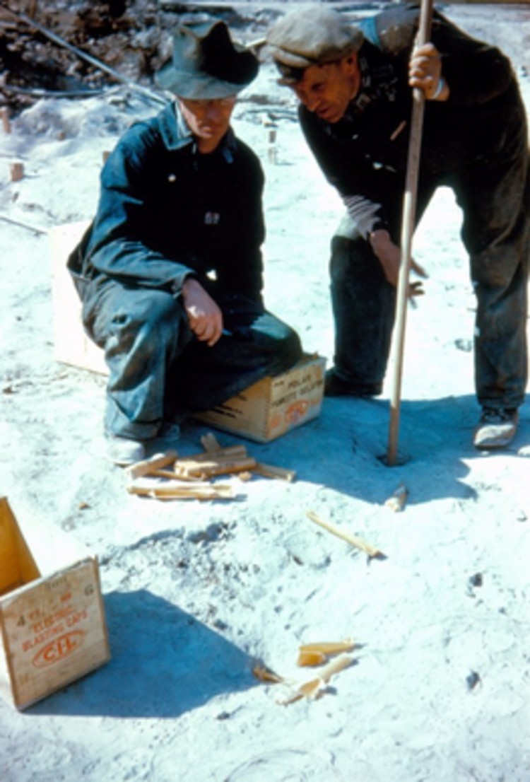 - Construction of the Rainbow Bridge - workers setting explosive blasting caps