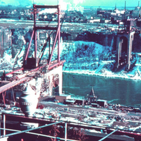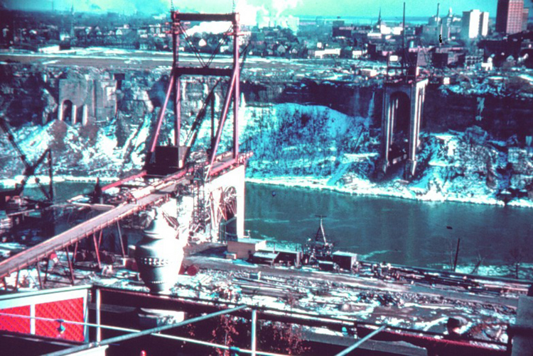 - Construction of the Rainbow Bridge seen from the top of the Hotel General Brock