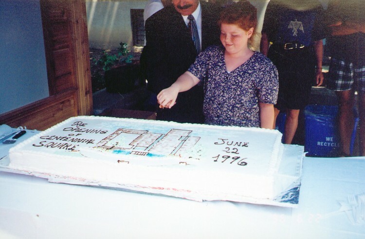 - Official re-opening of Centennial Square at Niagara Falls City Hall on Queen Street - cutting of the cake