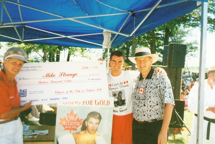 - Olympic Boxer Mike Strange receiving a cheque from the citizens of Niagara Falls