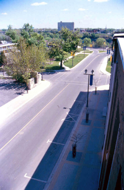 - Queen Street - Aerial view looking east down Queen Street toward River Road