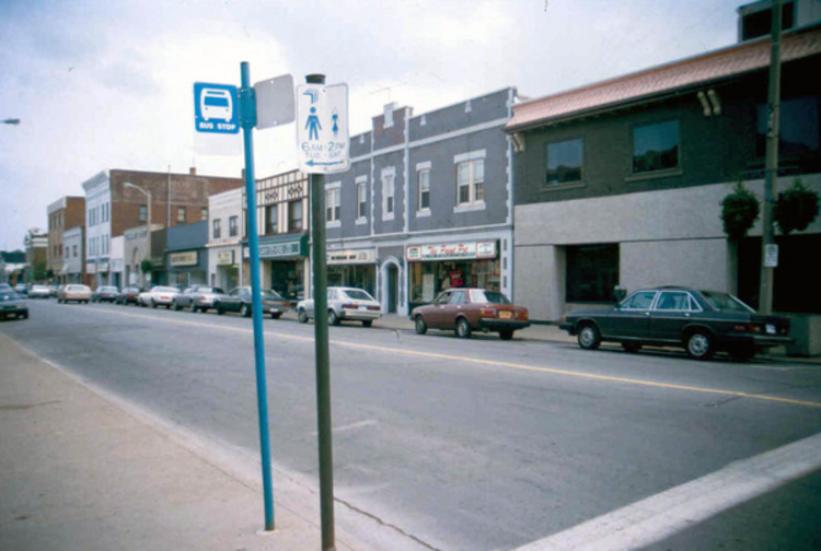 - en-CA Funding for scanning provided by a grant from Historic Niagara Development Inc.. Steven's Sam Men's Shop, The Rummage Shop, The Paint Pot and C J R N Radio Station visible on the right.