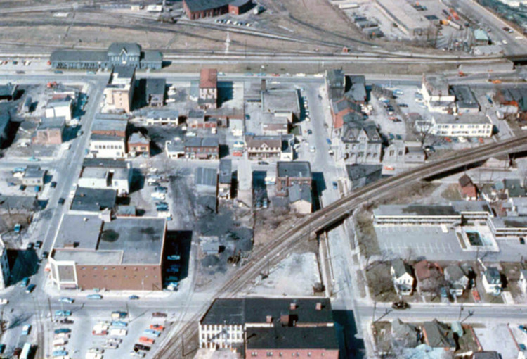 Aerial View - looking north down Queen Street and Park Street toward Bridge Street