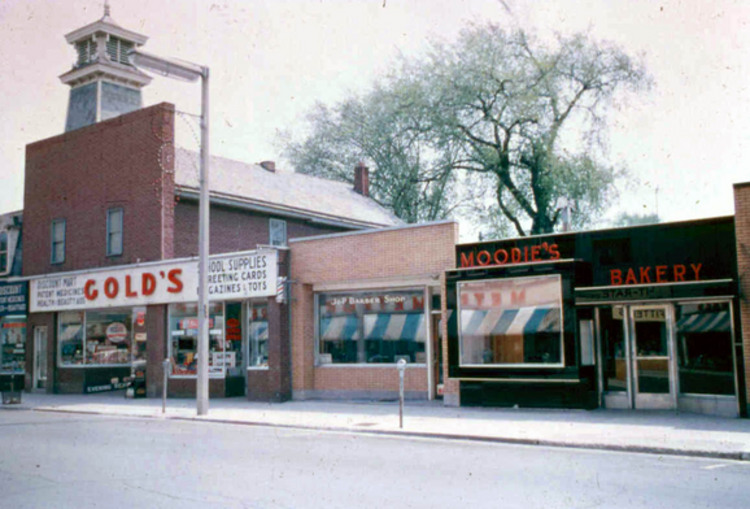 - en-CA Funding for scanning provided by a grant from Historic Niagara Development Inc.. This photograph was taken before renovations. J and P Barber Shop and Moodie's Bakery visible on the right.
