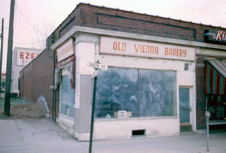 - en-CA Funding for scanning provided by a grant from Historic Niagara Development Inc.. Kindy's Furs visible on the right. Queen Street and Buckley Avenue intersection.